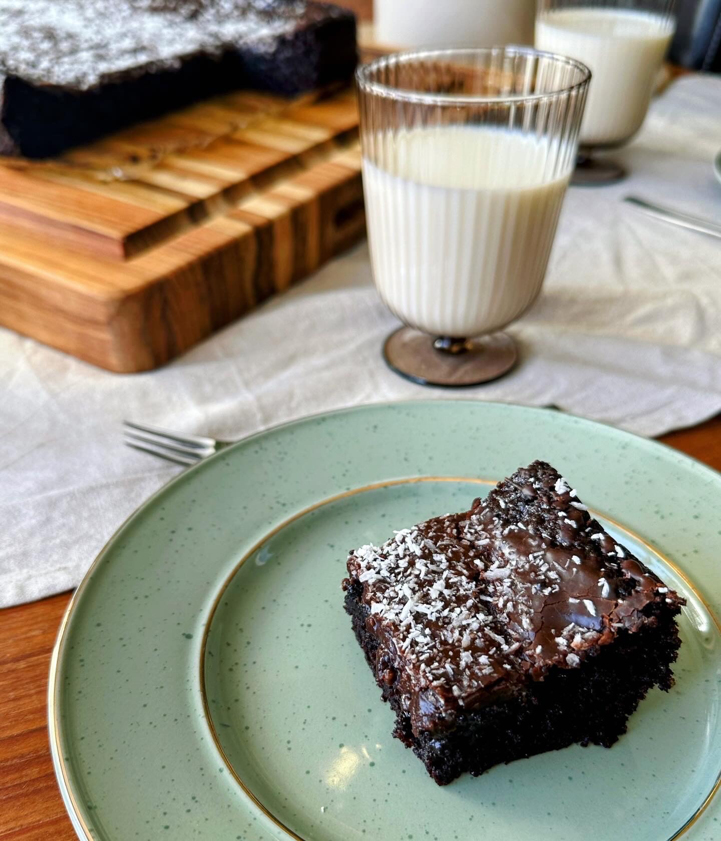 Lúffeng súkkulaðikaka, fullkomin með glasi af mjólk.
